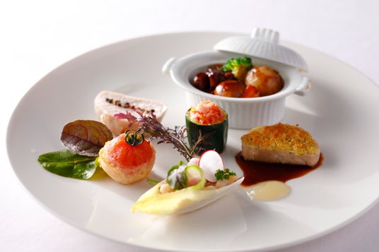 毎月、月替わりでシェフのおすすめコースやメニューを展開している「資生堂パーラー 銀座本店レストラン」。5月の期間限定コースでは、4月に引き続き春の味覚が楽しめるコースを展開します。ホワイトアスパラガスやグリーンピース、行者にんにくなど旬の野菜はもちろん、茨城県のブランド豚“常陸の輝き”や太刀魚など、多様な食材をコースに仕立てました。また、マンスリーメニューは、“八甲田牛”のおいしさを堪能できる『青森県産“八甲田牛”フィレ肉の塩釜焼きトリュフのソース』をご用意いたします。この機会にぜひ「資生堂パーラー 銀座本店レストラン」へ足をお運びください。