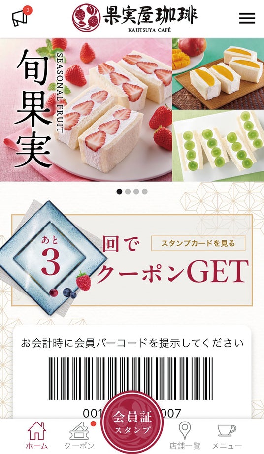 「果実屋珈琲公式アプリ」は、お客様に『果実屋珈琲』をより快適に、お得にご利用いただけるコンテンツを盛り込みました。