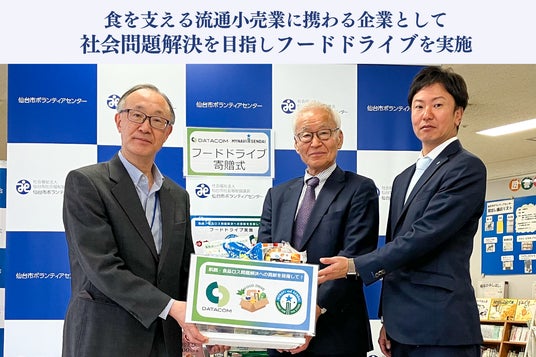 小売業界に特化した商品・顧客分析ソリューションを始めとする、パッケージシステムを開発・提供しているデータコム株式会社(本社:宮城県仙台市、代表取締役:小野寺修一)は2024年4月11日(木)~4月19日(金)と4月21日(日)にWEリーグ所属のマイナビ仙台レディース及び、宮城県に店舗を展開する株式会社ウジエスーパーとフードドライブを実施し、回収した食品を仙台市社会福祉協議会へ寄贈いたしました。