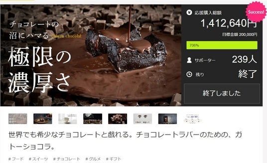 2024年3月31日まで応援購入サービス「Makuake」で出品した結果は、目標金額の706%達成、239名様の皆様に応援して頂きました。