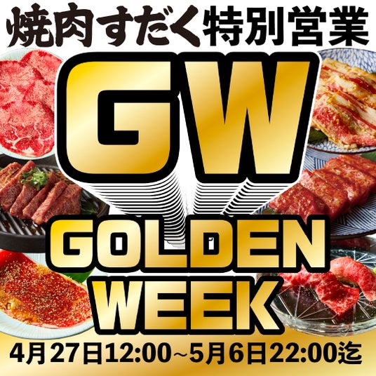 2024年4月27日~5月6日のゴールデンウィーク期間中、株式会社総合近江牛商社(本社:滋賀県守山市 代表取締役社長:西野 立寛)が運営する「近江焼肉ホルモンすだく」は、下記の対象店舗で12時~22時まで営業いたします。