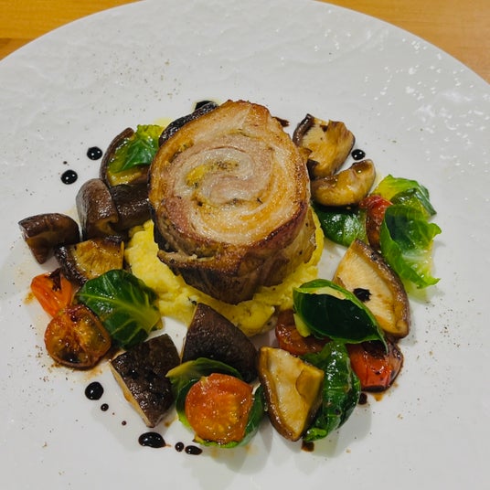 美瑛豚のポルケッタ 濱田さんのしいたけと季節の野菜添え