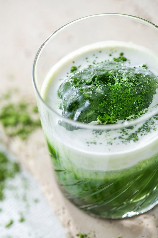 ウォッカをベースに、生クリームをフロートしたカクテル「ホワイトルシアン」を村上茶でアレンジ。村上茶の爽やかな甘みと香りが新緑の季節にぴったりな一杯。