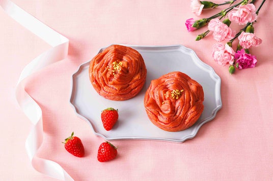 いちご風味の生地にいちごジャムを巻きこみ、ピンクの花びらが何枚にも重なる