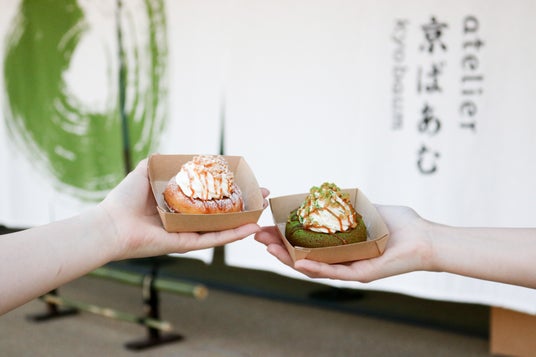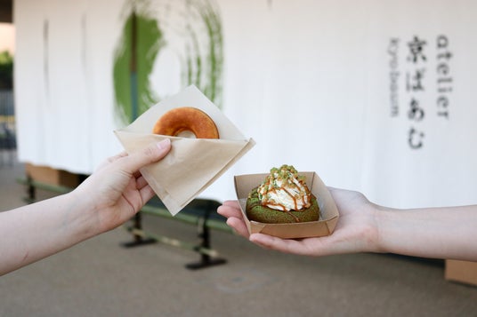 atelier京ばあむ2023年11月 京都市南区にオープン。ショップ・工場・カフェを併設し、随所に「京都」「抹茶」「バームクーヘン」を感じる仕掛けを盛り込んだ、京都最大級のお菓子のミュージアムです。京ばあむを製造する様子は、2Fの工場見学通路より無料で見学できます。2024年春からは、抹茶のミニバームクーヘンを焼き上げる体験プログラムを開始。