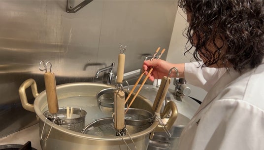 製麺、スープからラーメン作りを体験いただきます!今や世界中に多くのファンがおり、英語でも「Ramen」で通じるほど人気を博している日本のラーメン。わずか3日間で、その作り方を学べる貴重な機会になります。講師を務めるのは、ラーメン職人コースの専任講師・宮島力彩先生です。