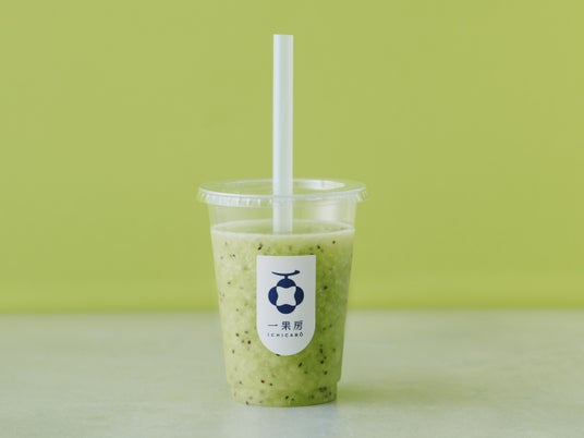 一果房おすすめのドリンク『旬の一果』は、店舗で熟度管理したキウイを使用した、果物専門店ならではの美味しさを味わえるこだわりのフレッシュジュースです。キウイは種が潰れるとイガイガとした食感が出てしまうため、独自のミキサーで種をつぶさず果肉が残るようにミキシングし、完熟のキウイをそのまま食べているかのような、ゴロゴロとした果肉の食感も味わえるようなドリンクに仕上げています。