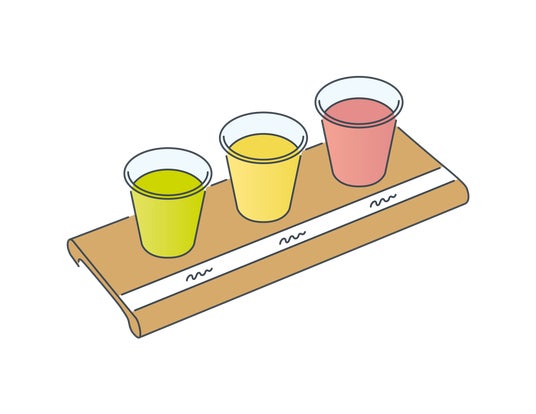 また、それぞれの異なる味わいを一度にお楽しみいただける商品として、その日取り扱う3種類の『旬の一果』を飲み比べることができる『フライト』をご用意しています。木製のプレートに3種類のジュースを乗せて提供いたします。飲み比べをして品種ごとの異なる味わいからフルーツの面白さ、奥深さを楽しんだり、お好みの品種を見つけていただくのもおすすめです。果物専門店だからこそできる品種の飲み比べで、品種ごとの色合いや味わいの違いをお楽しみいただけます。