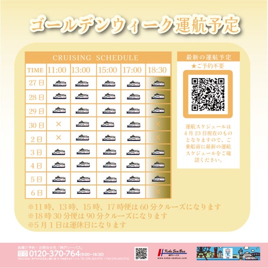「4月27日~5月6日 ゴールデンウィーク」運航スケジュール