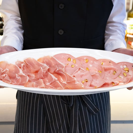 ・アルポンピエーレ名物生ハムとモルタデッラの盛り合わせ