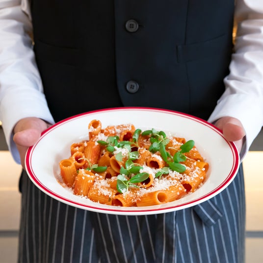 イタリア本店の雰囲気も楽しめる落ち着いた店内と、阪急百貨店最上階ならではのオープンエアーのテラス席で、100年の伝統を受け継ぐおいしさと、イタリアらしく楽しく過ごす時間をご提供します。