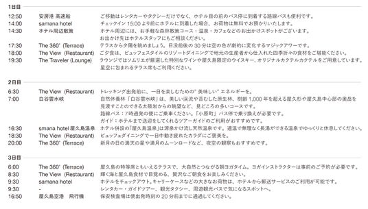 屋久島の色や音から制作した、屋久島に包まれるようなサウンドデザインを導入。モデルコース