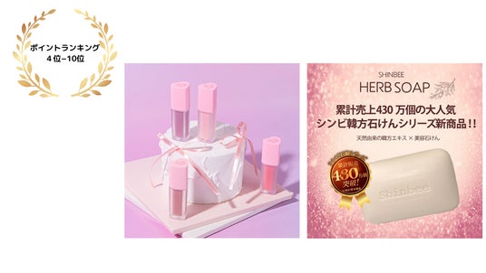 写真左より・ミルクハートティント&チーク4色セット・シンビハーブソープ