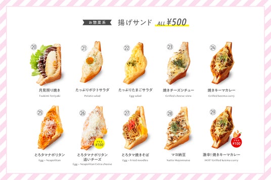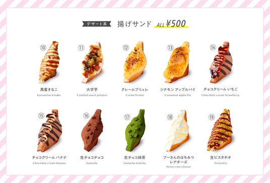 新しい食感を味わってほしいという理由から、店頭販売限定で「揚げたて・詰めたて」を徹底しています。味はデザート系19種、お惣菜系9種の全28種類と豊富なラインナップをご用意。お友達や家族とシェアすれば、さらにいろいろな味を楽しめます。