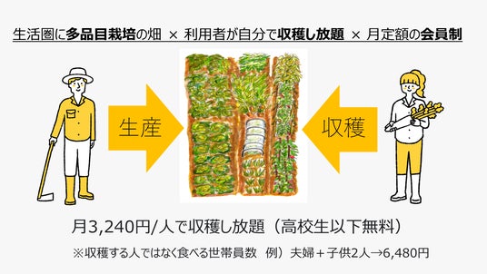 愛知県豊田市・岡崎市で多品目野菜の生産・販売ならびに農家支援サービスを行う株式会社ノーティスト(代表取締役:松本直之)は、月定額で利用者が農場から好きな野菜を好きな分だけ収穫できるサブスクリプションサービス「はたけビュッフェ(旧・ジージーフィールド)」を5月上旬より全国の農家へ事業展開を進めていきます。【サービスURL】https://hatakebuffet.com/本サービスでは、年間約100種類[※1]以上の野菜が栽培された農場へ利用者が出向き、八百屋で野菜を選ぶように食べたいものを収穫していきます。イチゴやブルーベリー等の観光農園に近いイメージですが、小売店へ買い物に行くついでに農場へ野菜を収穫しに行く「生活農園」として位置づけております。毎日でも、週一回でも、好きな時に好きなタイミングで、子どもと一緒に、買い物のついでに、ちょっとした運動を兼ねて。手軽に新鮮な野菜が手に入る、生活に密着したサービスです。[※1] 提携農家による。野菜の種類は約20~50品目、品種数は約50~150種類。