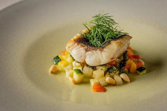 SEA BASS CAPONATA,DILL,BASIL鱸のポワレ カポナータソース