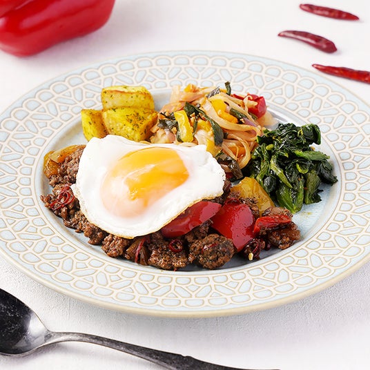 【新商品5.】とろ~り半熟たまごの旨辛ガパオライス