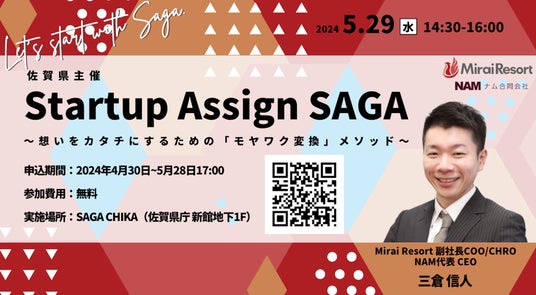 佐賀県は、企業や新たなビジネスの創出に取り組み、全国や世界に向けて大きく羽ばたこうとしている方々に佐賀だからこそできる「佐賀型」のスタートアップ支援を行っています。その結果、50名を超える起業家が誕生するとともに、全国や九州でのアワードを受賞したり、独自の技術やアイディアで特許を取得したりするスタートアップが現れている一方、今後の更なる事業拡大のためには、一人ひとりの「起業家」から大きな「事業」となれるよう、右腕人材確保や組織づくりが課題となっています。そこで2023年度から「Startup Assign SAGA」を実施し、将来の右腕人材候補との出会いの創出を目的にスタートアップの事業拡大や課題解決に資する人材を全国からマッチングする事業を開始することとなりました。