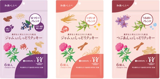 今回は第一弾としてこの漢方理論や薬膳の知識を応用し、女性の「キレイ」とQOLの向上をサポートするひとくちサイズのクッキーを開発いたしました。3種類の中から、ご自身のタイプに合わせてお選びいただけます。