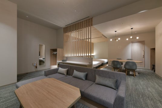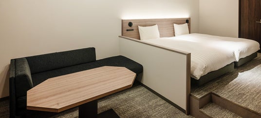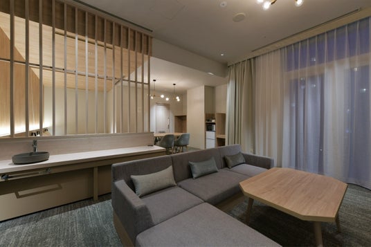 ※画像はホームページから拝借しておりますツインベッドとソファーベッドを配した、最大3名様までご利用いただける客室です。ベッドスペースとリビングスペースに段差をつけることで空間の区切りを演出。長期滞在でも使い分けしやすいのも魅力です。バスルームが窓際にあるため、ベッドスペースとリビングスペースに余裕があり、ゆったりとお過ごしいただけます。客室 フォースルーム(33平方メートル 4室)