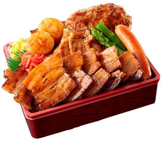 [実演]帯広「十勝豚丼こうふく」網焼き厚切りロース・ハンバーグ・トロトロ角煮・道産貝柱の贅沢豚丼(1人前)2,700円