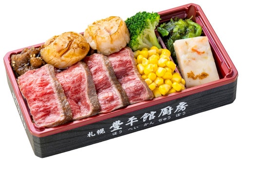 [実演]札幌「札幌豊平館厨房」十勝和牛カルビ昆布熟成ボリュームステーキと天然帆立弁当(1人前)2,916円[各日限定100]