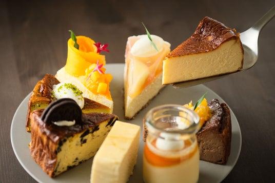 店頭にはベイクドチーズケーキやバスクチーズケーキ、テリーヌチーズケーキなど、様々なタイプのカットケーキを8種類から10種類ご用意しております。また地元産の季節のフルーツを使ったチーズケーキも人気です。組み合わせる食材や焼き方など、チーズケーキの美味しさはさらに無限に広がります。