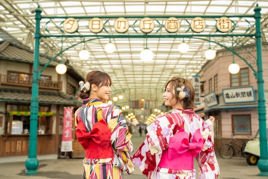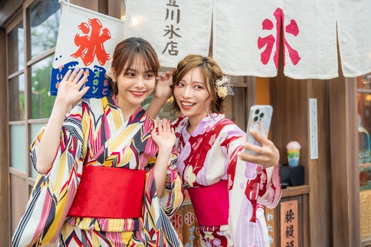浴衣で西武園ゆうえんちを楽しんでいるイメージ