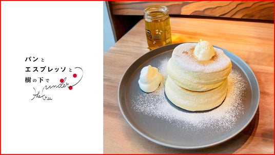 パンとエスプレッソと樹の下で で人気の「はちみつとバターとパンケーキ」です。オーガニックはちみつを好きな分だけかけてお楽しみいただけます。ALLタイムカフェメニュー■本館1F パンとエスプレッソと樹の下で