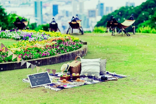 神戸布引ハーブ園のピクニックは、ガーデンが舞台。開放感あふれる園内には、花、ハーブ、芝生、ベンチ、テーブル、東屋などピクニックシーンを彩るロケーションが点在しています。バスケットを片手に、お気に入りの場所を探しながら、最高のおしゃピクを満喫ください