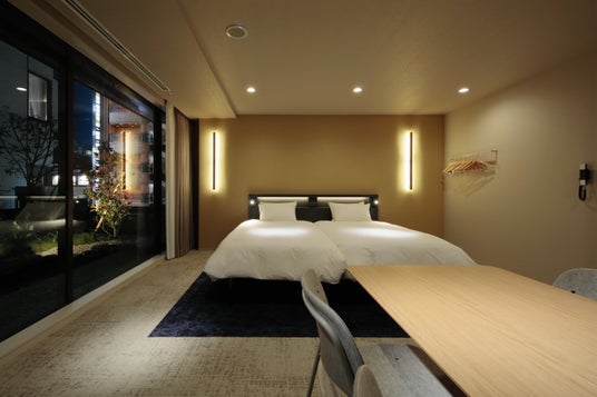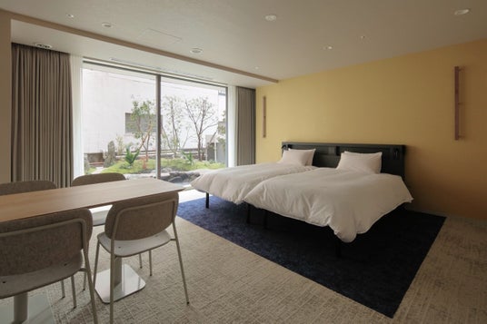全ての客室にオランダ発の家具メーカー、DeVorm社のリサイクルペットボトルから作られるPETフェルト生地を用いた「ヘール ペットフェルト スタックチェア」を設置。スクールチェアから発想を得たスタッキングチェアで、シンプルながら洗練されたフォルムが特徴的です。客室:4階(計1室)ベンダールームを改修しツインルームとして客室化。カップル、ご夫婦、女子旅などのご利用に最適です。客室:10階(計2室)既存のスイートルームを分割し、トリプルルーム1室、フォースルーム1室にリニューアル。ファミリー、グループなど幅広いシーンでご利用いただけます。同フロアの客室の設えに合わせ、インテリアはブラウン中心のカラーでまとめました。エントランス