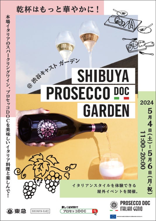 (会長:ステファノ・ザネッテ)は、2024年5月4日から6日まで、渋谷キャスト ガーデン(東京都渋谷区渋谷1-23-21)に「渋谷プロセッコDOCガーデン」をオープンします。