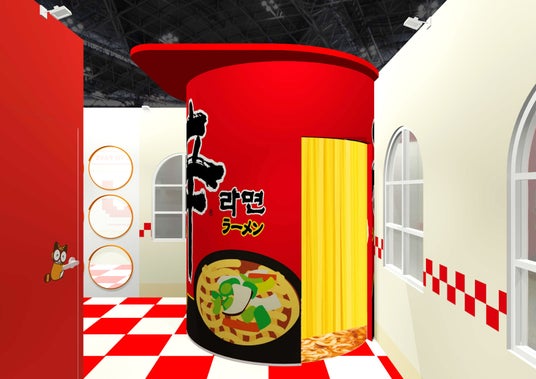 K-Foodを代表する「辛ラーメン」がKCON史上初の“OFFICIAL K-RAMYUN(公式Kラーメン)”に選定されました!辛ラーメンカラーである赤を基調にしたブースは、K-POP好きな来場者層に合わせ“トレンディ”かつ“ポップ”を意識してデザインしつつ、圧倒的な「辛ラーメン」の存在感を遠目から見ても感じてもらえるように仕上げました。