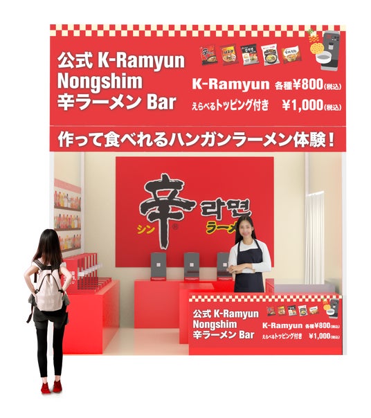 K-カルチャーを日本でも体験していただきたく、日韓の若年層を中心に注目を集めている自動ラーメン調理機で袋麺を調理し食べる通称『漢江ラーメン』形式で当社の袋麺メニューを販売します。王道の「辛ラーメン」を初め、“NEXT辛ラーメン”と話題の「ノグリラーメン」、辛くなく旨味が凝縮された「コムタンラーメン」等、当社袋麺を多数ご用意しました。トッピングも楽しめるので、ぜひ“推しK-RAMYUN“を見つけてください。