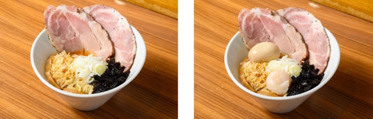 1.なにわの金の濃厚豚骨醤油~炙り焼豚・炙り角煮乗せ~ 1,000円(左)