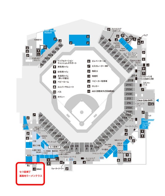 エスコンフィールド2F MAIN LEVEL 「七つ星横丁」奥の屋外テラス