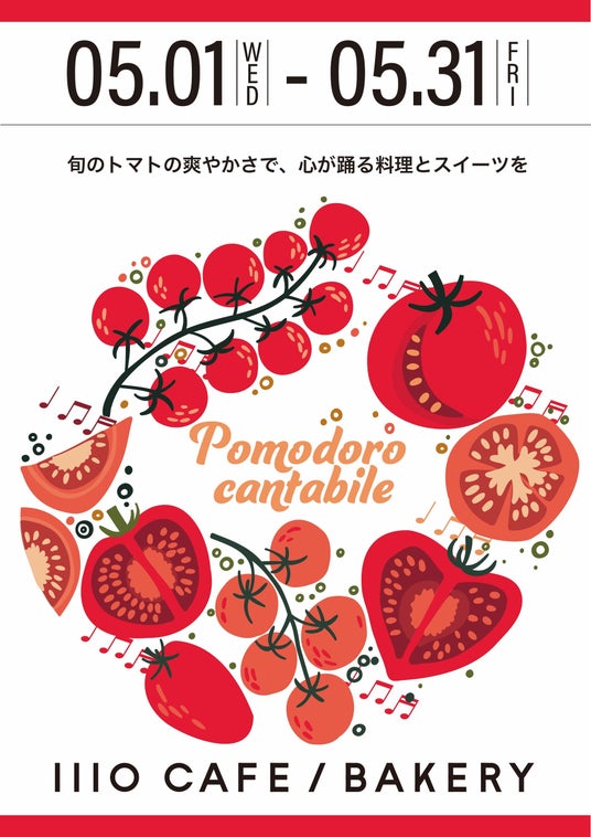 5月のテーマは「Pomodoro cantabile -旬のトマトの爽やかさで、心が躍る料理とスイーツを- 」と題し、旬のトマトを使用したメニューを5月3日(金・祝)よりご提供します。
