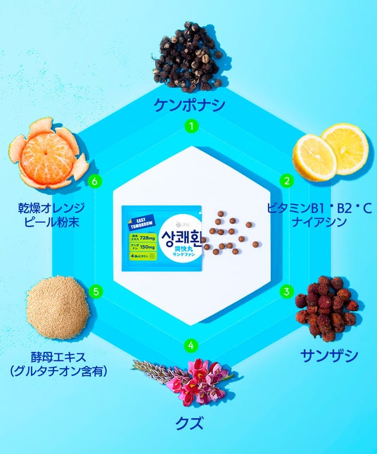 「爽快丸」は、翌日も「爽やか(サンクェ)」な朝にするための、「丸(ファン)」状のサプリメントという意味で「サンケファン」と読みます。