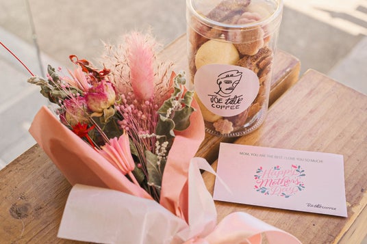 今回は、「JOE TALK COFFEE」のお菓子工房で作られたクッキーの詰め合わせと母の日にぴったりなお花をセットにしました。