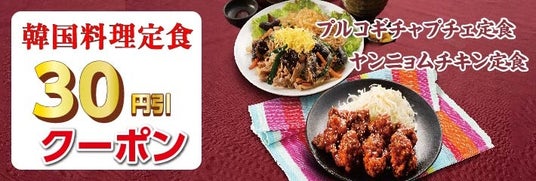 宮本むなし公式アプリでは、販売期間中に何度でも使える「韓国料理定食30円引き」クーポンを配信いたします。会員の方限定でご利用いただけるクーポンですので、この機会にぜひ宮本むなし公式アプリをダウンロード&会員登録ください。