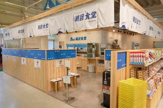 常磐ものを見てお腹が空いてきたら、売場に併設する「潮目食堂」で常磐ものや旬の魚料理を楽しんでいただけます。メニューをすべて一から見直し、鮮魚専門店だから実現できる鮮度抜群の海鮮丼を低価格でご提供することがコンセプトの食堂です。席数が以前の2倍以上の33席になり、店内も広々としたため、お食事をゆっくり楽しんでいただけるようになりました。より常磐ものを楽しんでいただけるよう、常磐ものを含む8種類のネタが楽しめる「海鮮8種丼」等の新たなメニューが登場しています。