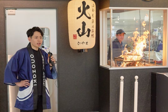 新しい店舗では、体験要素を含んだイベントを実施しております。100年以上続くいわきの伝統「かつおの火山(ひやま)」の実演が始まると、オープンキッチンの前には、一目見ようとするお客様でいっぱいになります。私たちもマイクを使ってカツオの火山の解説や想いなどをお話させていただきます。今後は、すでに実施しているかつおの火山の実演をはじめ、まぐろ解体ショーやあんこうのつるし切りショー、魚に関するワークショップの実施など、海産物専門店ならではの体験型企画を予定しています。かつおの火山ショー…毎日10時/11時/12時 開催中 (日時は変更の可能性あり)