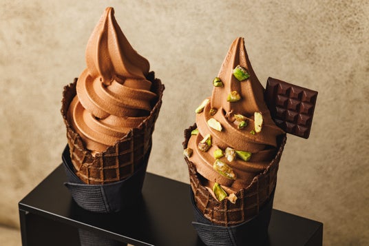 カカオ75%のオリジナルブレンドのショコラ ノワール、砂糖、水で作られたソフトクリーム ショコラ。厳選されたカカオ豆から作られた風味豊かなショコラの味をストレートに味わえる人気のソフトクリームです。販売開始:2024年5月8日(水)