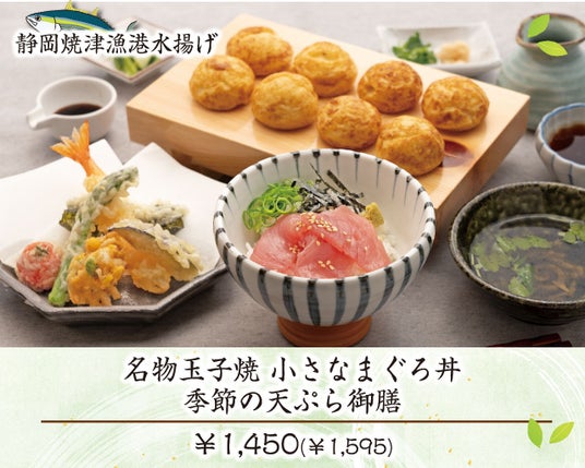 毎朝丁寧にひいた”特製お出汁”を使用した名物玉子焼と静岡焼津漁港水揚げのまぐろ丼は特製醤油で。季節の天ぷらは白エビ コーン プチトマト アスパラ なす等旬の野菜を天ぷらに。旬の味わいをお楽しみください。