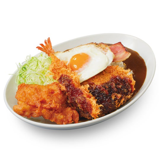エビフライ、から揚げやカレーなど老若男女に好まれるおかずを一皿に盛り合わせ、さらにこれまで期間限定メニューで登場し人気を博したベーコンエッグやハンバーグカツを添えました。
