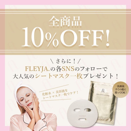 2024年5月13日(月)~5月15日(水)の期間中、ブース内にて、FLEYJA.の各SNSのフォロー画面の提示に〈モイストパワーフェイスマスク〉1枚をプレゼント!