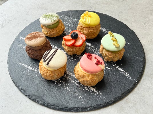※実際の提供プレート。それぞれのシューマカロンを味わい深くなるようオリジナルブレンド