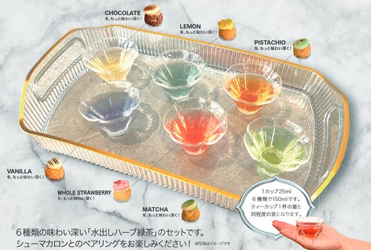 味わいの変化を楽しめるスイーツ体験!シューマカロンとのペアリングハーブ緑茶セット。