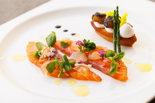“佐渡サーモン”のカルパッチョ 会津郷土料理“にしん山椒漬”のクリームチーズ添え
