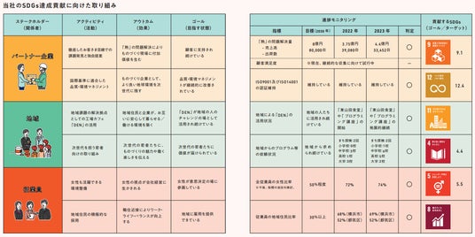 スリーハイのSDGs達成貢献に向けた取り組みについて、「OMOU2023」では進捗モニタリングを追加しました。活動(アクティビティ)それぞれについてKPIとなる指標、2030年の目標、2022年・2023年の数値について記載しました。